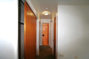2 closets in the hall one for coats and one with shelves for linens and towels